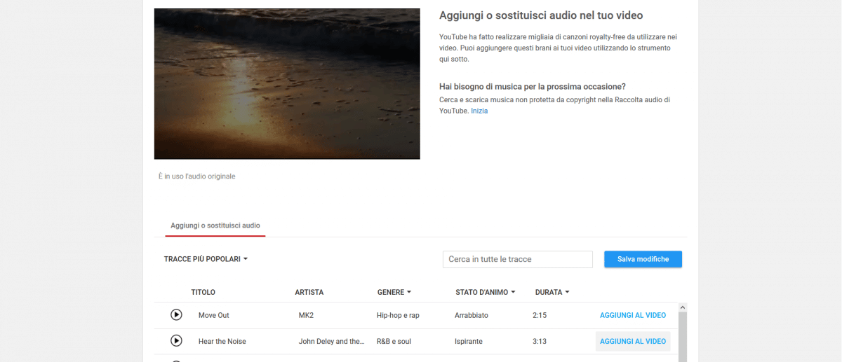 Filtrez les titres disponibles, écoutez les extraits, puis cliquez sur Ajouter à la vidéo pour intégrer la piste. Il suffit ensuite de sauvegarder : YouTube prendra quelques instants pour appliquer le changement sonore.