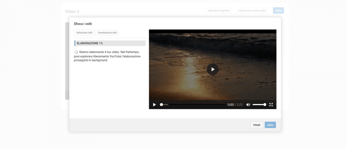 Pour masquer un visage dans la vidéo, l’éditeur propose deux options : flou automatique ou sélection personnalisée. Une fois lancé, le traitement prendra plus ou moins de temps selon la durée de la vidéo. Ce genre d’ajustement protège l’anonymat d’une personne filmée, ce qui peut éviter bien des litiges.