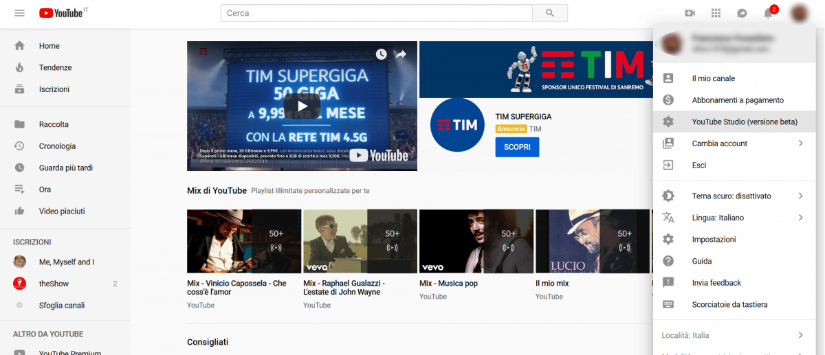 Ouvrir YouTube Studio