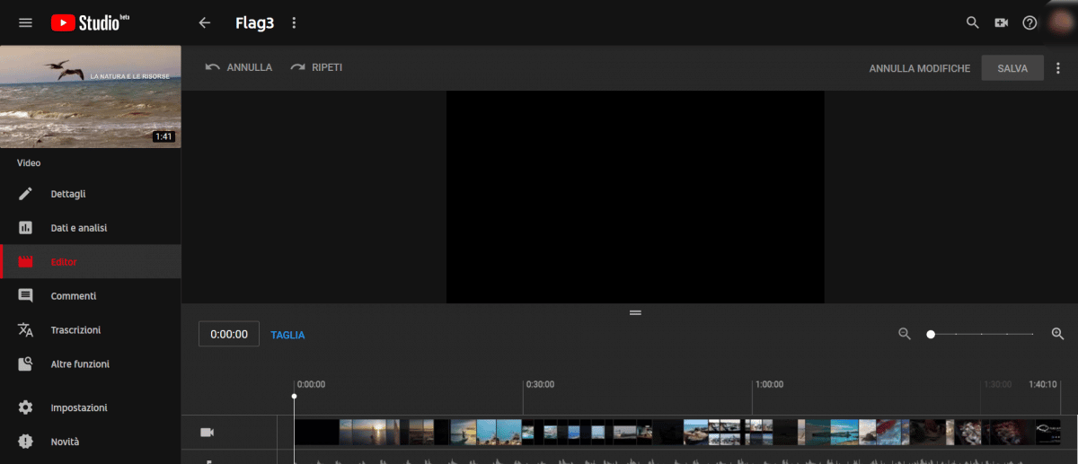 Après avoir ajusté les informations, dirigez-vous vers l’éditeur vidéo accessible à gauche. L’interface donne la possibilité de couper des passages, d’ajouter des zones floues, de modifier la bande-son ou encore d’insérer un écran de fin.