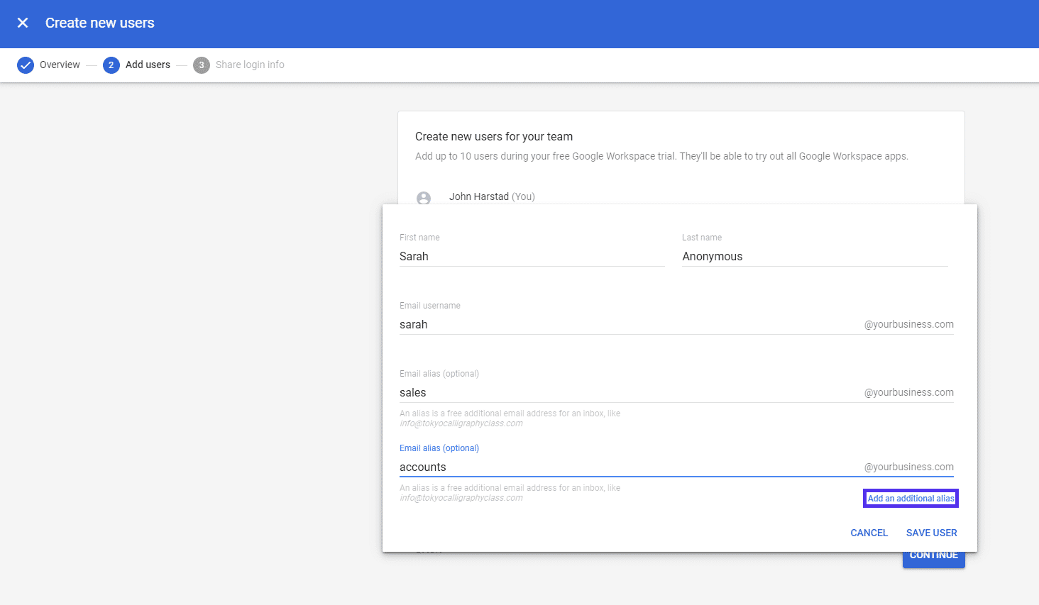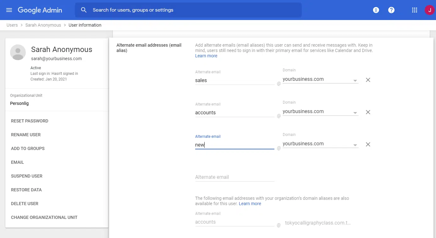 Google Workspace permet d’aller jusqu’à 30 alias par utilisateur. De quoi créer une adresse pour chaque besoin, chaque département, chaque projet.