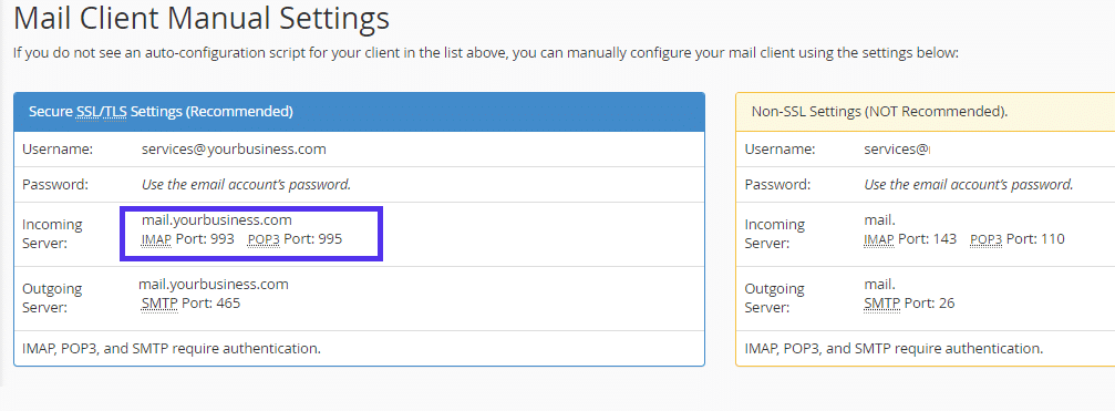 Le nom du serveur POP3 se trouve généralement dans votre espace d’hébergement ou via une recherche rapide.