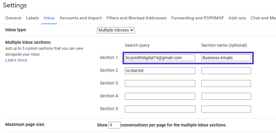 Utilisez le filtre « to:[email protected] » pour trier les messages par destinataire. Vous pouvez nommer chaque section selon vos besoins.