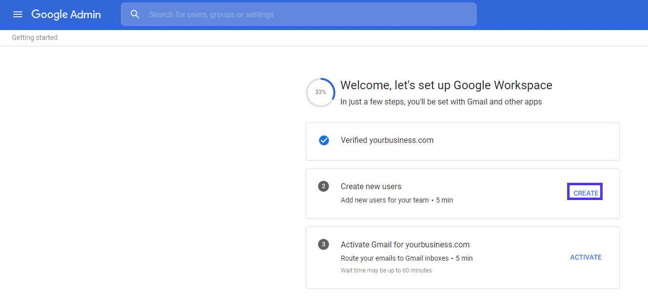 Inscrivez votre équipe sur Google Workspace et suivez simplement les instructions.