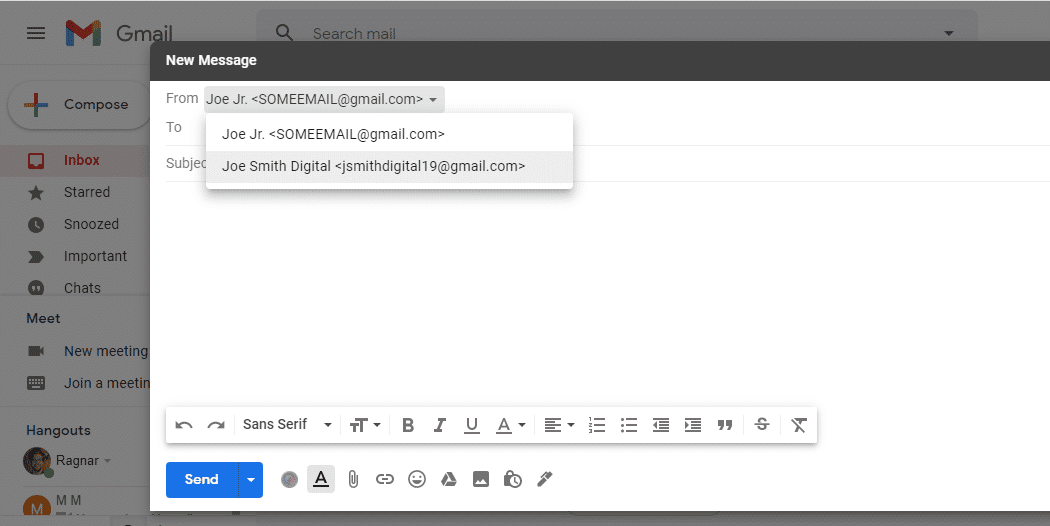 Si un menu déroulant affiche vos différentes adresses, la manœuvre a fonctionné. Vous pouvez désormais envoyer des messages depuis vos alias.