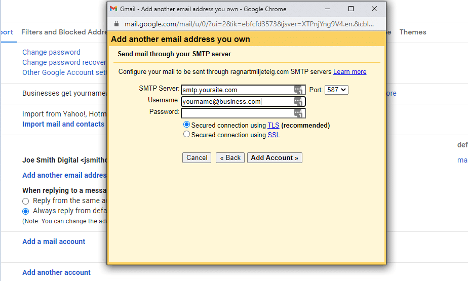 Pensez à cocher « Toujours utiliser une connexion sécurisée » et à choisir les bons paramètres.