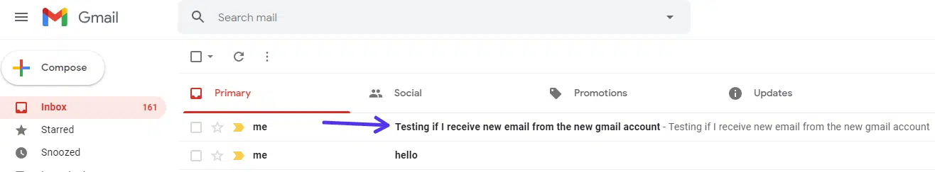 Pour tester la réception, faites-vous envoyer un e-mail sur la nouvelle adresse ajoutée : il doit apparaître dans votre boîte principale.