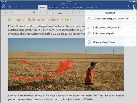 Comme précisé plus haut, les applications sont téléchargeables gratuitement. Mais il y a une contrepartie : la lecture des fichiers se fait sans frais, tandis que l’édition et toutes les fonctions avancées sont réservées aux titulaires d’un abonnement Office 365. Pour accéder à toutes les fonctionnalités, il faut donc mettre la main à la poche : 99,99€ par an (ou 9,99€ par mois) pour un usage individuel, 79€ par an pour les étudiants universitaires. Chaque formule inclut l’utilisation d’Office sur plusieurs ordinateurs (jusqu’à 5 PC/Mac, 2 pour la version Étudiant), l’iPad étant considéré à part.