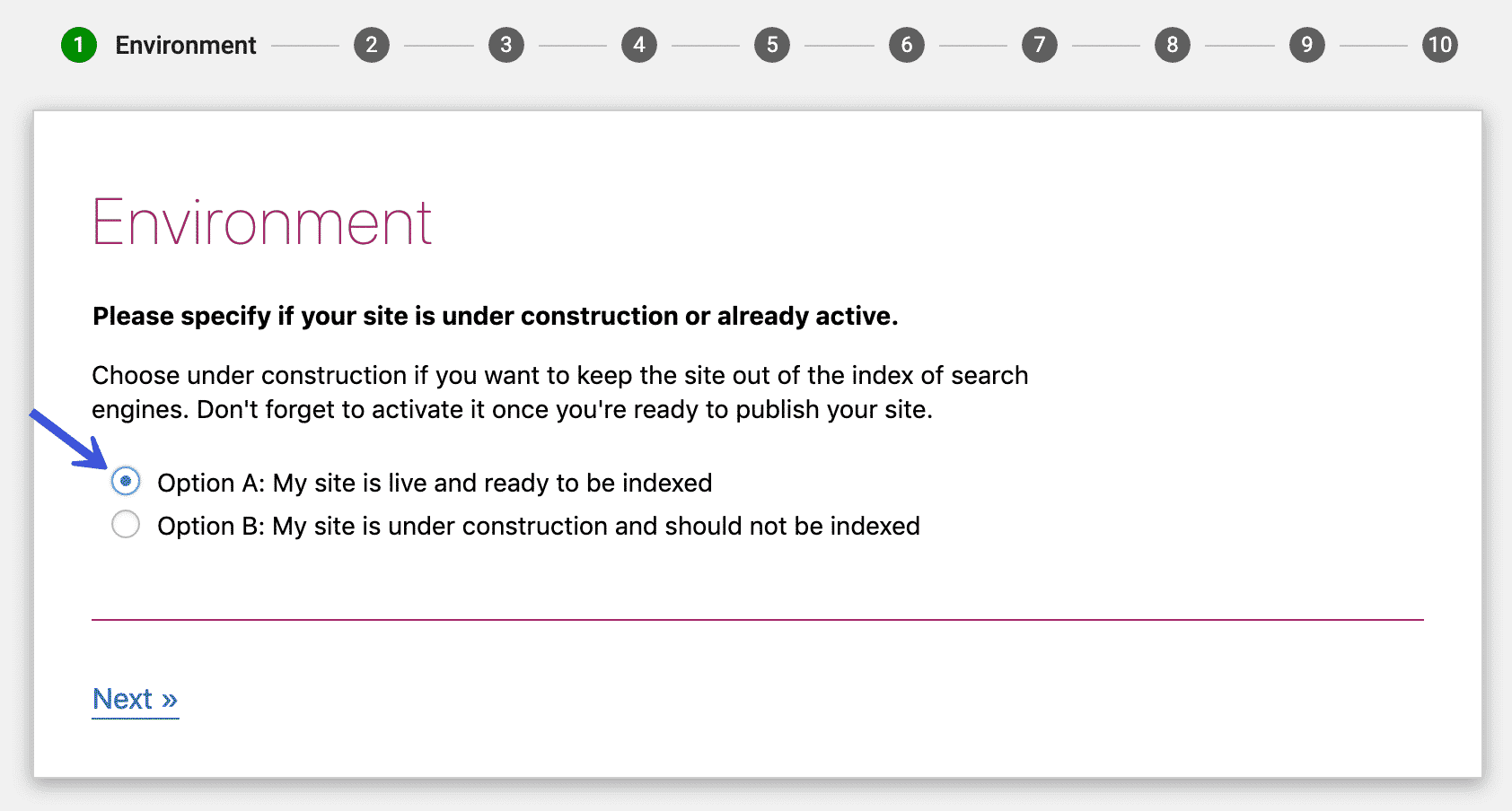 Dans la zone Environnement, privilégiez l’option A, sauf si vous travaillez sur un site en développement :
