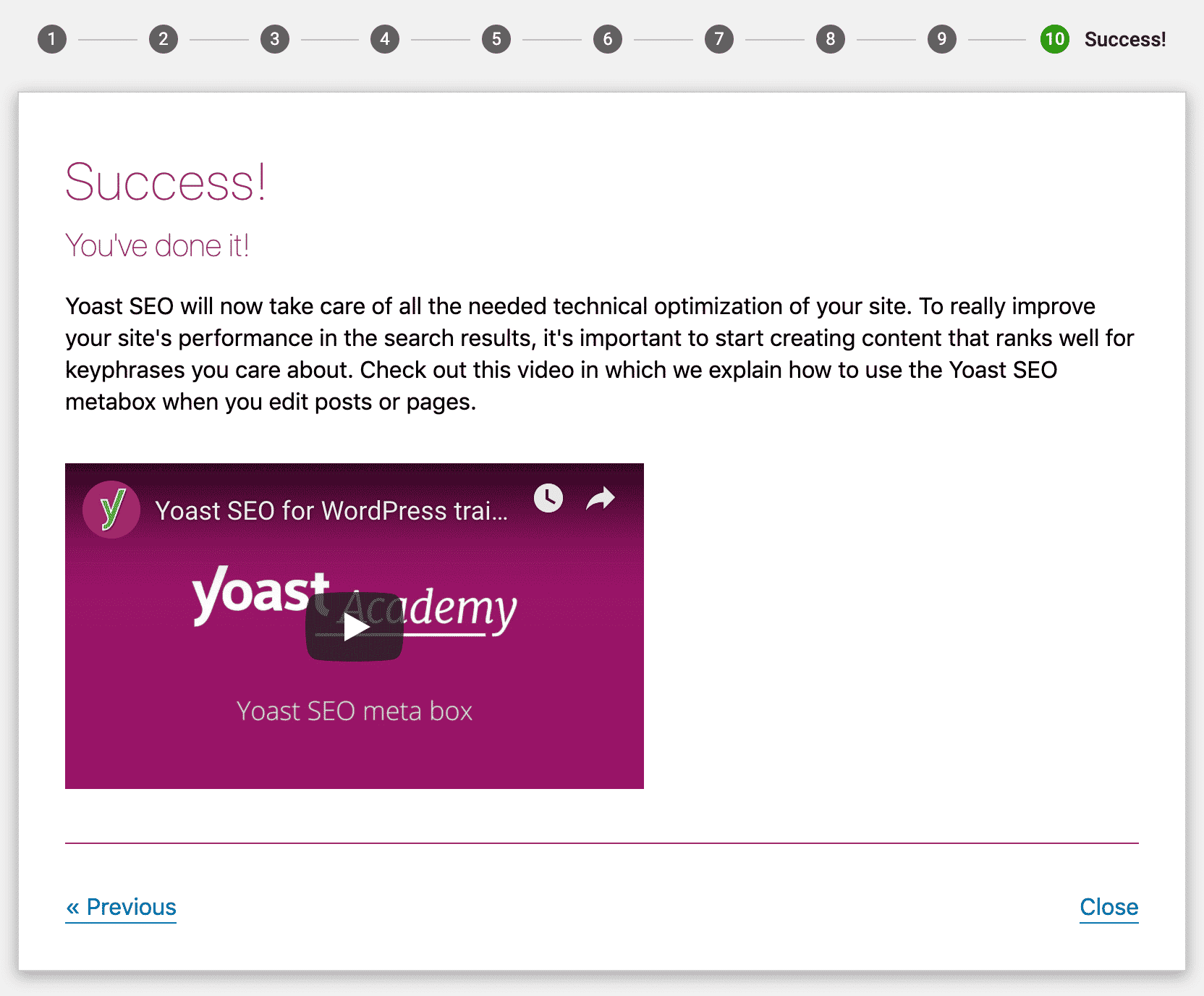 Mission accomplie : la configuration de Yoast SEO est désormais derrière vous.