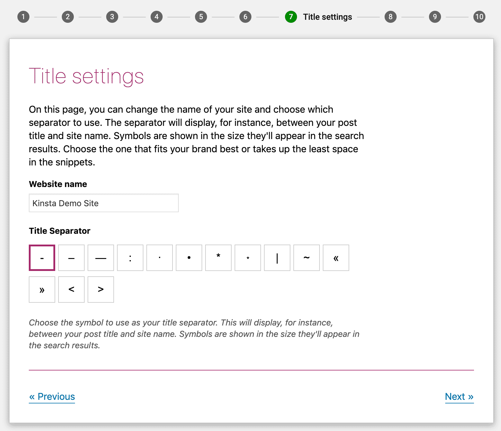 Par exemple, un post « Comment utiliser Yoast SEO » affichera sur Google : Comment utiliser Yoast SEO – Site de démonstration de Kinsta