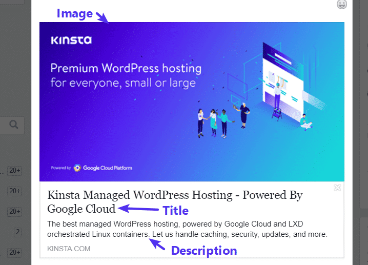 Ce sont ces informations que les réseaux sociaux utilisent pour générer l’aperçu d’un lien :